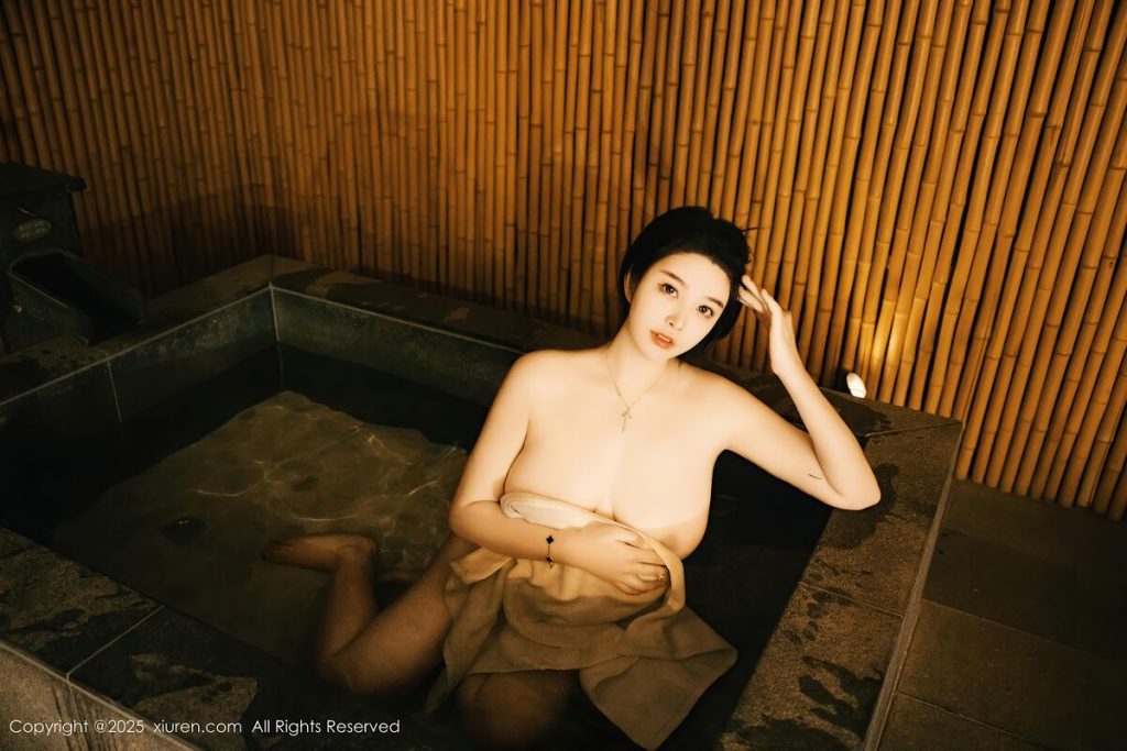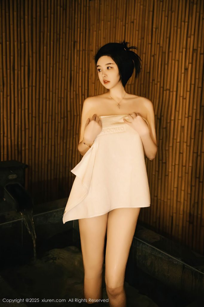 Model @Lin Ruo Fan F* Sexy photo release, hot spring theme shooting, sexy white bath towel, plump and breathtaking figure, a full set of photos, a total of 37P, I hope everyone likes and supports it.